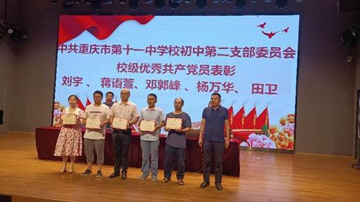 最后,我支部荣幸邀请到重庆十一中党委委员肖开模为我支部优秀共产党员颁奖,并重温了入党誓词,号召大家向优秀共产党员学习,要不忘初心,牢记使命,甘于奉献,为党育人,争做教师队伍中的优秀党员教师!