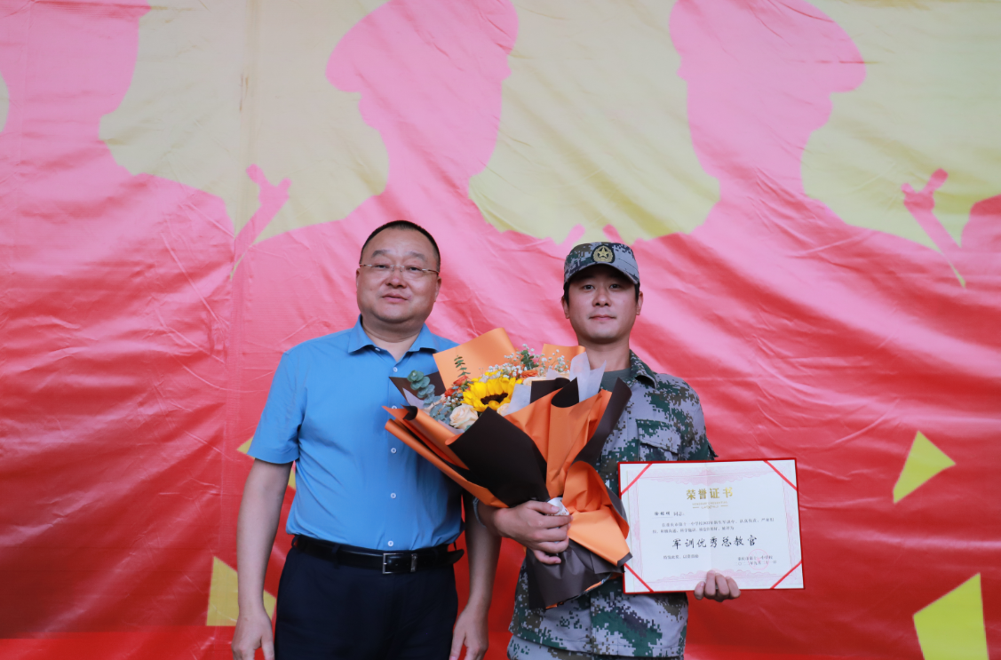 南岸区教委工委向南岸区人民武装部赠送锦旗,章显林校长给总教官颁发荣誉证书,家委会代表为各位教官颁发荣誉证书,并献上鲜花。