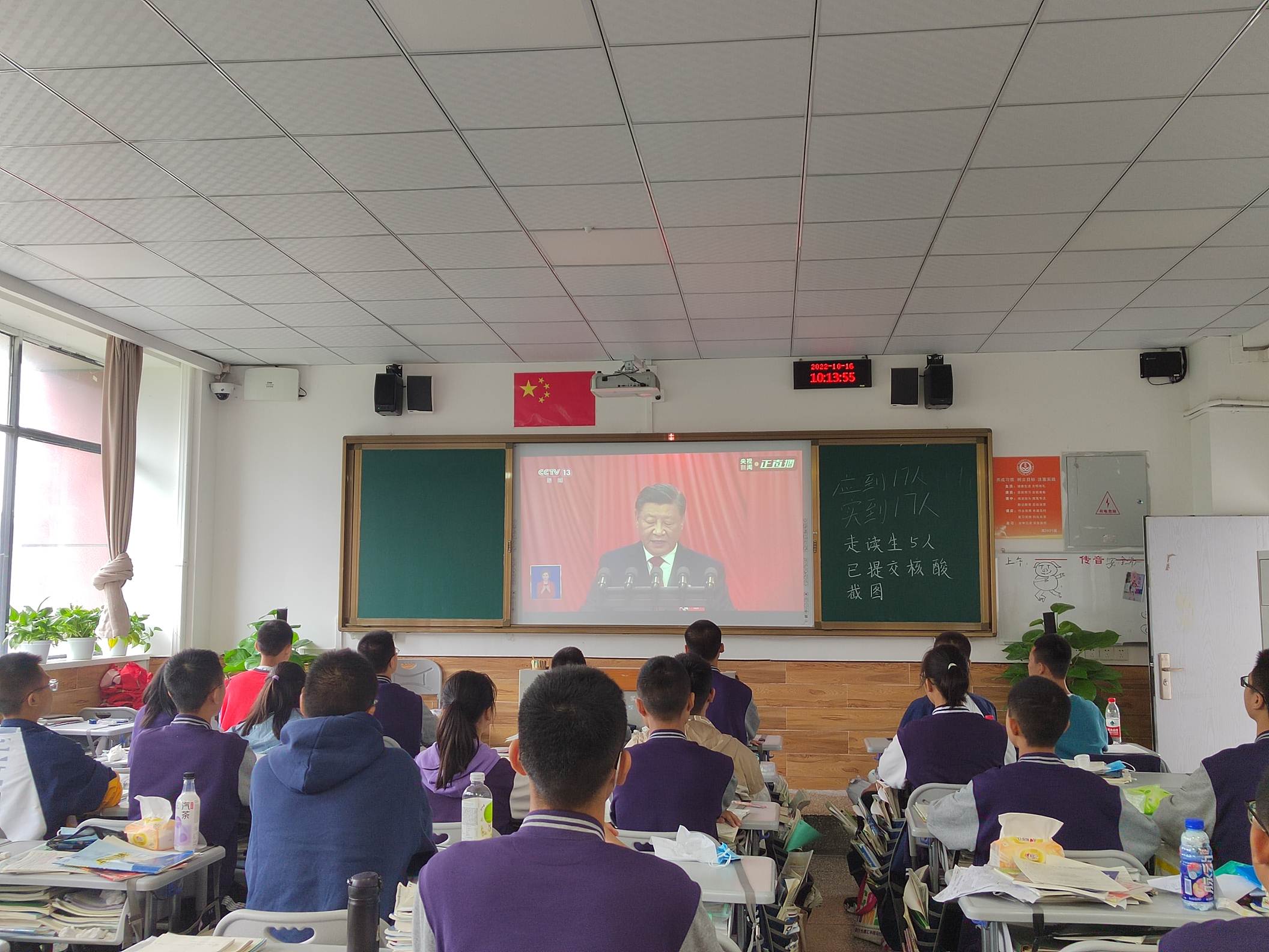 喜迎中国共产党20大顺利召开,我校组织周末在校学生收看20大新闻和大会召开直播。