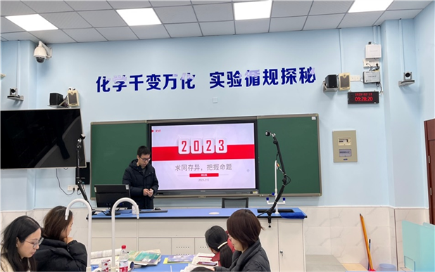 2023年2月13日,化学教研组开展本学期第一次集体教研活动,高中各年级备课组参与会议。本次主要包含两个议程:第一,由冉仪枫组长强调本学期教研组重点内容;第二,由杨丰瑜、伍贤玲、冉仪枫三位教师分享新旧教材对比分析内容和试题命制心得体会。