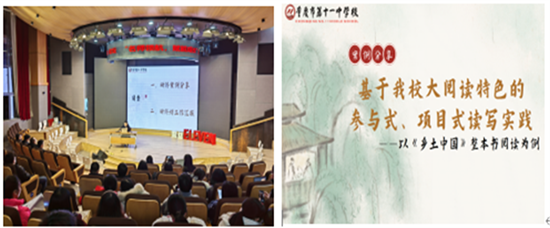 1.语文学科王文涛老师以“向青草更青处漫溯”为主题,代表张俊南岸区高中语文种子教师工作坊对《“思维发展与提升”视域下的“读写说”语文实践研究》进行工作汇报。以《乡土中国》整本书阅读为例,王老师分享了基于我校大阅读特色的参与式、项目式读写实践,展示了工作坊的组建筹备、自我提升与成果收获。