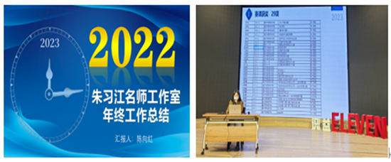 3.朱习江名师工作室的成员陈向红老师介绍了工作室成绩。陈老师以个人成长为例讲述了工作室在赛课、科研、命题等方面的领航作用,并为自己做出了未来规划展望。团队里各位老师学无止境、教无止境、研无止境的态度,也让大家一起向未来踔厉奋发。