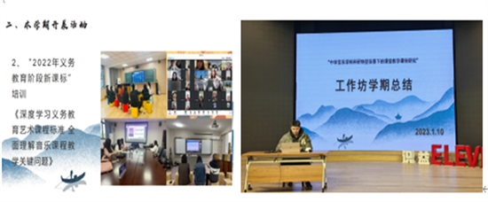 6.音乐学科刘方家老师代表李松芝南岸区中学音乐种子教师工作坊,进行学期“中学音乐学科科研转型背景下的课堂教学课例研究”总结。刘老师分享了本学期线上+线下混合式的教师研修模式,开展基于课标下学生学业评价的教师行为研究、线上共研《探索礼乐弦歌 复兴中华乐教》等活动,提升教师能力。