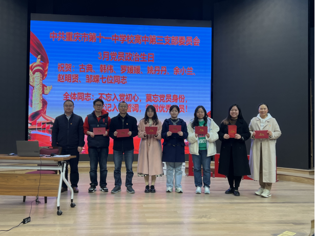 三月是支部党员古典、韩伟、罗媛媛、姚丹丹、余小兰、赵明贤、邹蝶七位党员同志的政治生日。在收到了专属政治生日贺卡后,七位党员表示:在接下来的日子中,将不忘党员身份,牢记入党誓词,争做优秀党员!