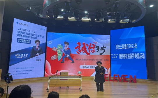 习近平总书记指出:“思政课不仅应该在课堂上讲,也应该在社会生活中来讲”,“‘大思政课’我们要善用之,一定要跟现实结合起来”。2023年3月16日,在重庆市第十一中学校110周年校庆来临之际,我校政治名师工作室联合重庆三峡银行、南岸区周俐莎法治工作室举办了以“金融助力思政课堂,师生共享法治荣光”为主题的“3.15” 消费者权益保护宣教活动,共筑“大思政课”法治长城。