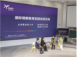 2023年3月23日,一行继续到到成都市四川师范大学附属实验学校,校长助理李涯老师围绕《九年一贯制学校国际理解教育课程规划与实施》进行交流分享,依托时代的命题、国家的政策、课程生成思维、课程设计建构这四方面,详细介绍了教师从课程切入、以课堂落脚、用课题促进,将教师国际理解素养的培养融入具体实践中,培养兼具中国情怀与国际视野的学生。