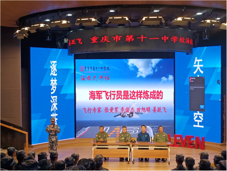为了让海航学子更坚定舰载机飞行员这一崇高理想,也为了让大家对舰载机飞行员有更清晰的认识,2023年3月30日重庆市海军青少年航空学校特邀请四位飞行专家莅临重庆十一中为海航学子答疑解惑,以坚定其信念理想。