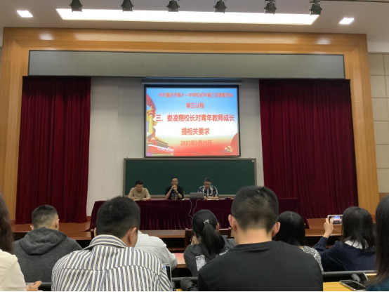 9月26日下午,初中第三党支部在文德中学弹子石校区开展“党员帮帮帮”活动,本次活动以“青年教师培训”为主题,由支部书记赖德东主持,分别邀请了文德中学副校长娄凌翔、督学唐荣龙、主任助理李江为青年教师作专题讲座。
