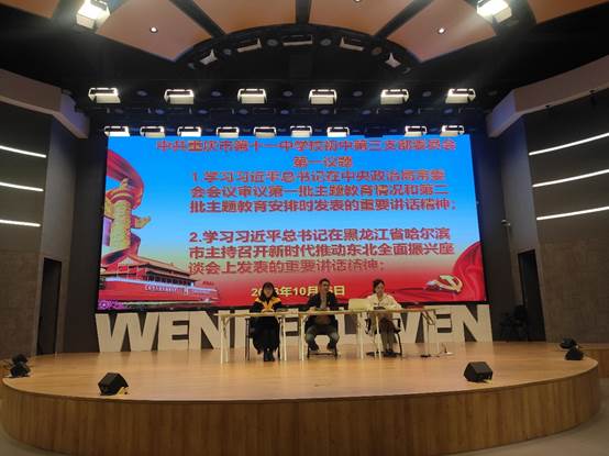 10月27日下午,初中第三党支部召开本月的主题党日活动,支部书记赖德东同志主持会议,支部党员“第一议题”学习了习近平总书记在中央政治局常委会会议审议第一批主题教育情况和第二批主题教育安排时发表的重要讲话精神、习近平总书记在黑龙江省哈尔滨市主持召开新时代推动东北全面振兴座谈会上发表的重要讲话精神、习近平总书记在听取黑龙江省委、省政府工作汇报时发表的重要讲话精神。