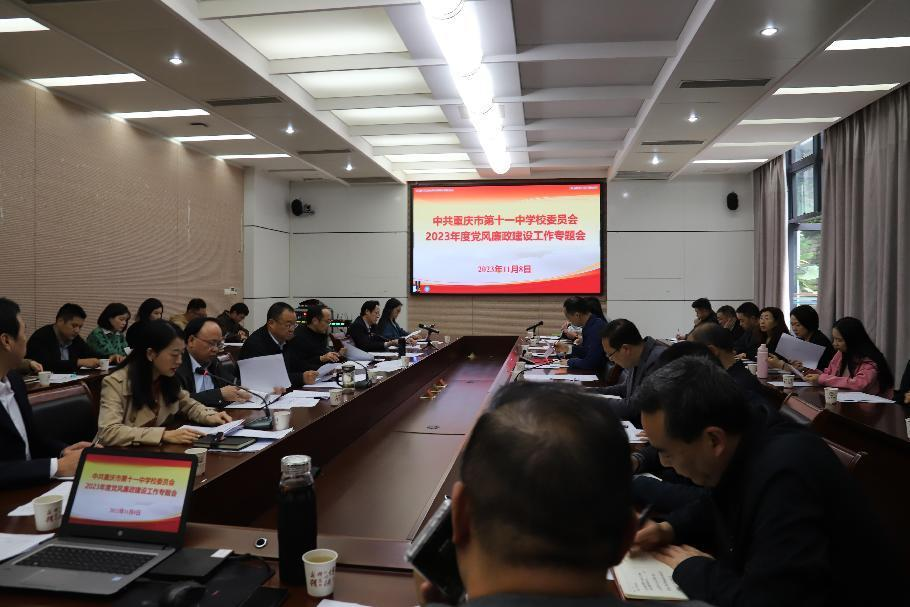 伟大事业必须依靠党的领导,全面从严治党永远在路上。重庆十一中认真把握新时代党的建设总要求,认真贯彻落实党风廉政建设的任务部署,不断展示新气象新作为。全校上下勠力同心,在党建统领下加强统筹谋划,加强执行推动,加强教育监管,加强队伍建设,加强作风培塑,为全面深化学校内涵建设、实现为党育人、为国育才的教育使命、办好人民满意的教育夯筑的“廉洁堡垒”。