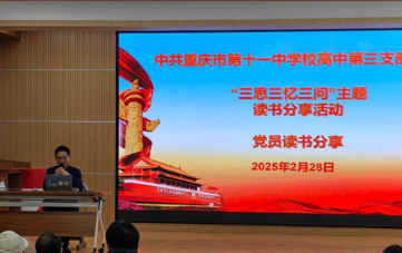 会议最后,由党员江霞同志带来了与本次学习内容相关的“三思三忆三问”主题读书分享活动。江霞同志结合个人感悟,深入阐述了“三思”的深刻内涵、“三忆”的历史情怀与“三问”的深刻启迪,强调大家要通过思考和学习,紧跟时代步伐,深入理解习近平总书记的重要讲话精神,以更加饱满的热情投入到学校发展与党建工作中。刘东华书记对江霞同志的分享给予了高度评价,认为其分享内容贴近实际、切合主题,富有启发性。大家纷纷表示,将以此次分享为契机,进一步加强学习,深刻领会习近平新时代中国特色社会主义思想,提升自我,为推动学校高质量发展和党建工作贡献力量。