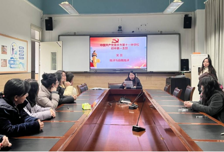 为深入学习贯彻习近平新时代中国特色社会主义思想,加强党员队伍建设,提升党组织的凝聚力和战斗力,2025年3月18日,初一党支部在文德中学CBD校区二楼会议室召开了 2024 年度组织生活会,并开展了民主评议党员工作。会议由党支部书记杨柳青主持,全体党员参加。