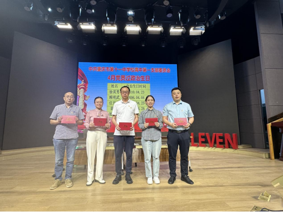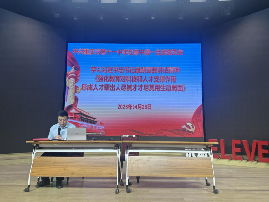 2025 年 4 月 28 日,中共重庆市第十一中学校高中第一支部委员会在识益演播厅开展了 4 月主题党日活动,本次活动由支部书记徐英男主持,全体党员积极参与,活动氛围热烈而庄重。