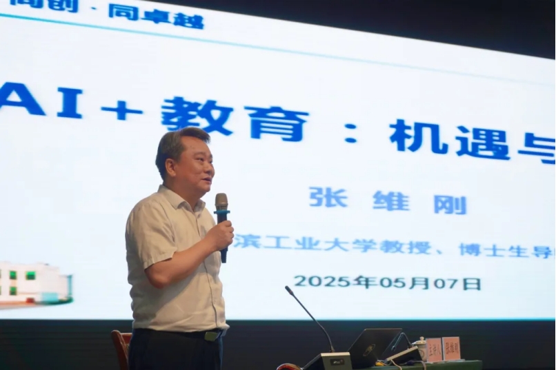上午活动第二阶段由云南省教研员孔瑞老师主持。由哈尔滨工业大学教授、博士生导师,计算机科学与技术学院副院长张维刚教授作题为“AI+教育:机遇与挑战”的专题讲座,为地理教育工作者探索学科创新发展提供前沿视角。张教授结合教育数字化转型背景,点明人工智能正以前所未有的速度重塑教育生态。他指出,AI技术在教育领域的应用已突破传统边界,从智能教学辅助系统到个性化学习方案设计,从虚拟仿真实验到跨媒体知识图谱构建,为学科教学带来了革命性变革。尤其在地理学科中,AI可通过大数据分析模拟自然现象演变、运用虚拟现实技术还原地理场景,助力学生直观理解抽象概念。