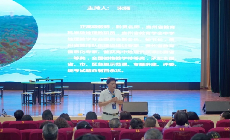 上午三节课后,贵州省教育科学研究院地理教研员宋强老师为大家剖析课例。他指出,AI 在地理教学应用处探索阶段,有不足但潜力巨大,成效关键在教师的合理运用。AI 可助力备课、课中资源生成、课后拓展,打造高效课堂,且要服务于教育本质。 在点评三堂展示课时,他认为这些课展现了AI 赋能地理教学的初步成果,体现了不同地区的教学特色。第一堂课聚焦农业区位因素变化,用 AI 呈现乡村振兴画面,培养学生地理实践力与综合思维;第二堂课围绕资源跨区域调配,借 AI 模拟工程实践,提升学生地理实践能力和人地协调观;第三堂课以地域文化与城镇景观为主题,通过 AI 地图定位和海报制作,增强学生文化自信与家国情怀。 他还提出,AI 赋能地理教学需凝聚众智,希望全国地理教师共同参与,推动地理教育创新。同时,教师运用 AI 时要注重案例选择与地理过程教学的逻辑性,切实培养学生地理核心素养。