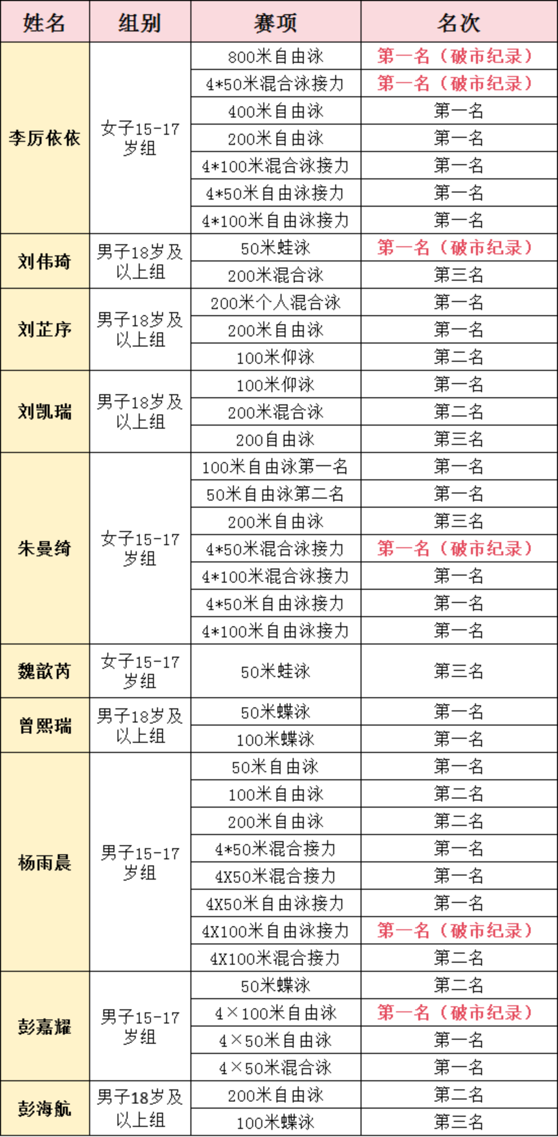 重庆十一中游泳队10名健儿参赛,以出色的竞技状态和顽强的拼搏精神,打破2项重庆市纪录,斩获多项第一名!