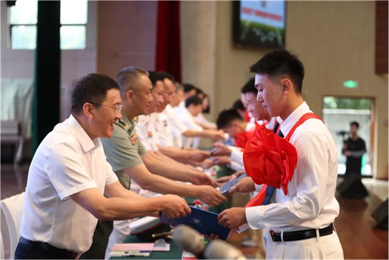 仪式中,海军航空大学孙副校长宣读飞行学员录取名单。在热烈的掌声中,44名海航学子身着整齐的服装,胸配大红花,意气风发走上主席台,从军地领导手中接过录取通知书,正式开启他们“矢志海空 逐梦深蓝”的新征程。