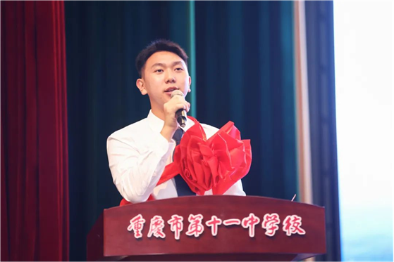 荣耀背后不仅有十一学子日夜兼程的奋斗足迹,更饱含家长们的全力支持。海航202202班陈绍骞作为录取飞行学员代表谈到:“成长的每一步都离不开母校的科学培育与军方的专业指导。”他动容地表达了对母校和老师的感恩之情,更字字铿锵立下誓言:“必将以过硬本领成为一名优秀的舰载机飞行员,用青春捍卫祖国海空!”家长代表汪洋的发言则满含温情与期许,她对学校和军方的辛勤培育表示衷心感谢,并希望全体录取学员早日成为能担起守护海空重任的栋梁,为祖国的海空事业贡献力量。