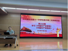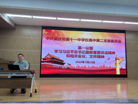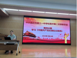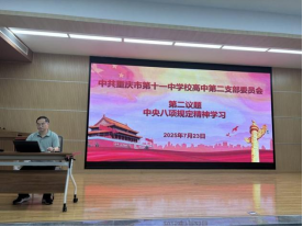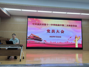 2025年7月23日,中共重庆市第十一中学校高中第二支部委员会开展主题党日活动,全体党员齐聚一堂,围绕政治理论学习、纪律作风建设等核心议题开展深入学习研讨,进一步筑牢思想根基,凝聚奋进力量。