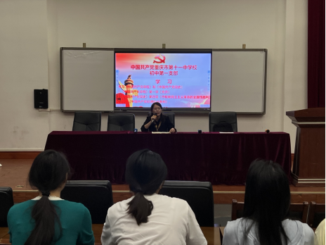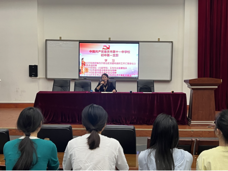 2025年10月16日,初中第一党支部在CBD校区阶梯教室开展“铸牢中华民族共同体意识”主题党日活动,党支部书记杨柳青主持,全体党员参加。