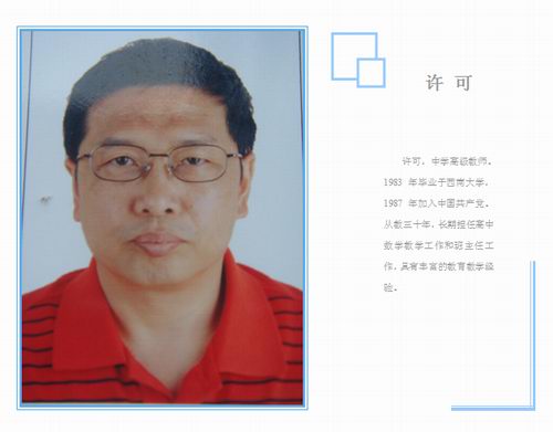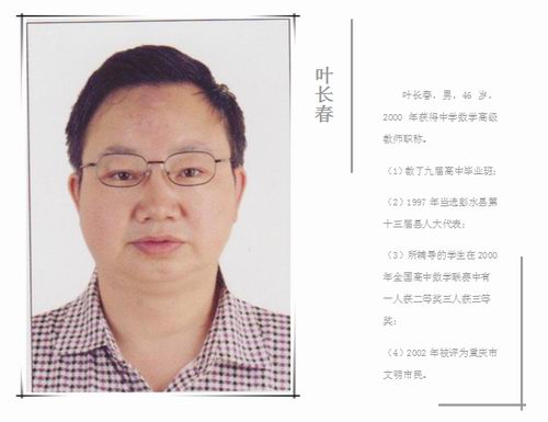 中学数学高级教师,南岸区优秀教师。